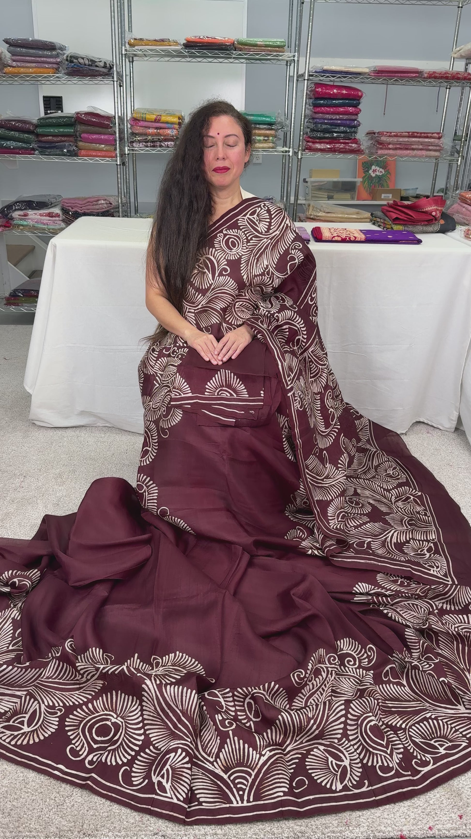 Kavya - Coffee Brown Batik Handcrafted Pure Silk Saree