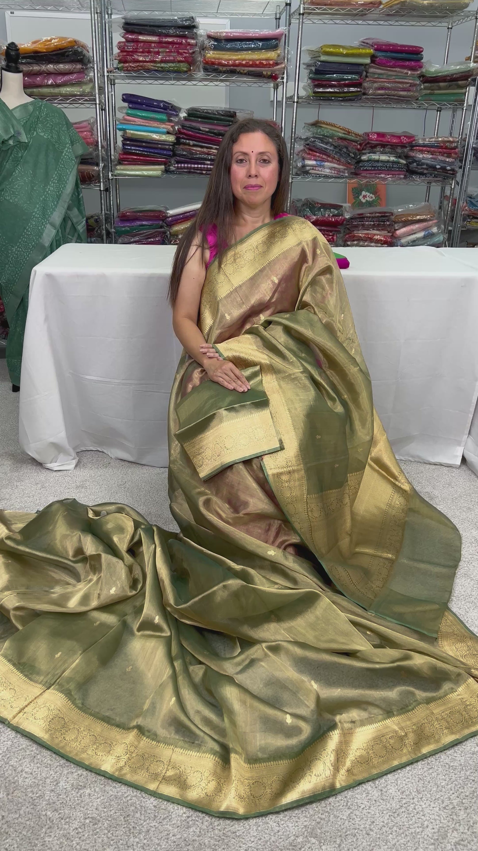 Silk Mark Certified Green Tissue Banarasi Saree with Golden Zari